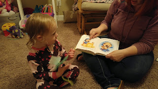 I also don't have pictures of the last day of our family time learning about the sick men but what I did was get 10 popsicle sticks and colored (both sides) 9 of them one color (purple for us) and one stick another color (red). I laid them all out and asked which one she thought was the one that came back to say Thank You to Jesus---and she was able to pick that out immediately. And then I would pick one up and ask "Did this one say thank you? No...." and would randomly pick up the one that did and see her face light up.